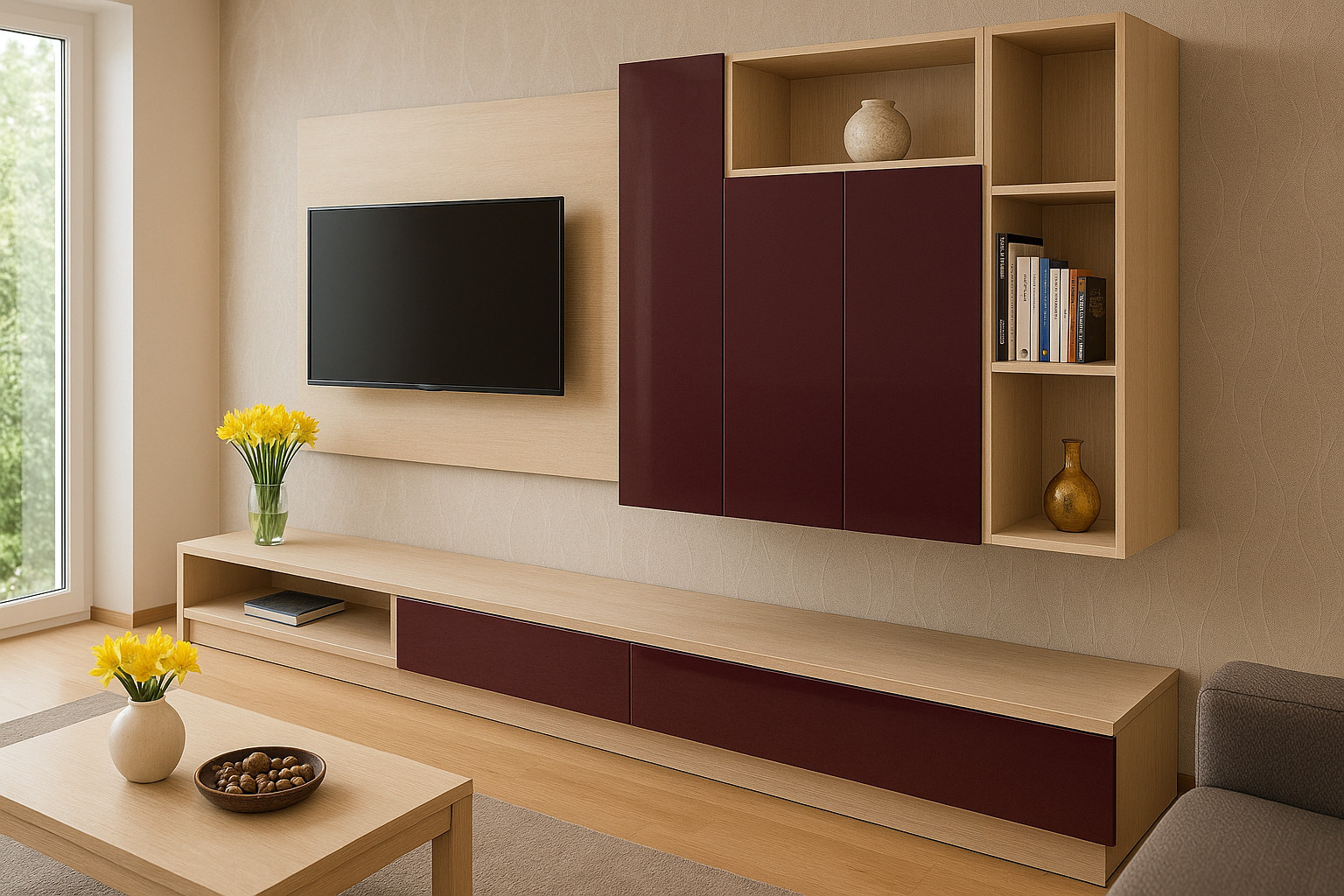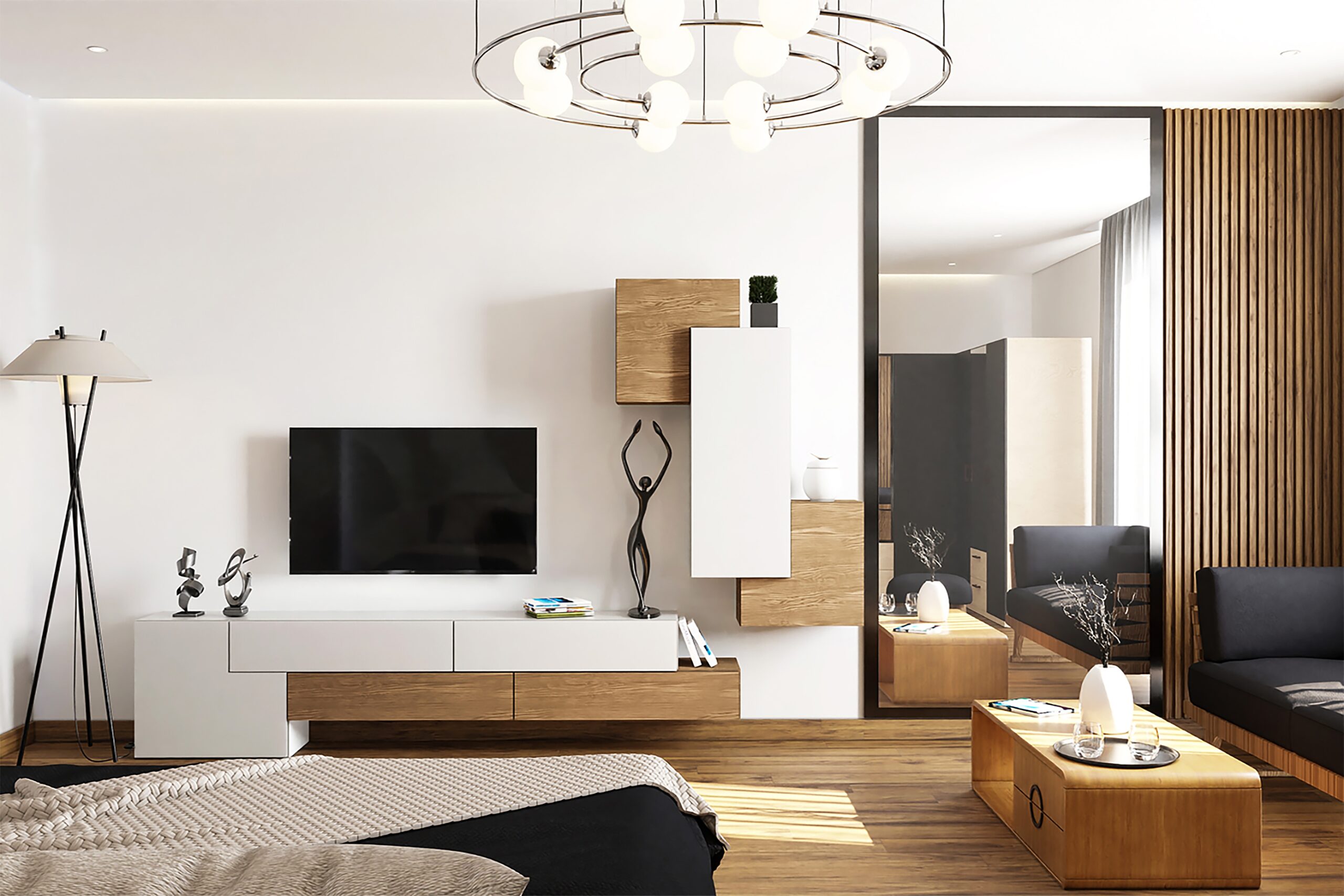 Stylish,Living,Room,With,Customized,Tv,Unit